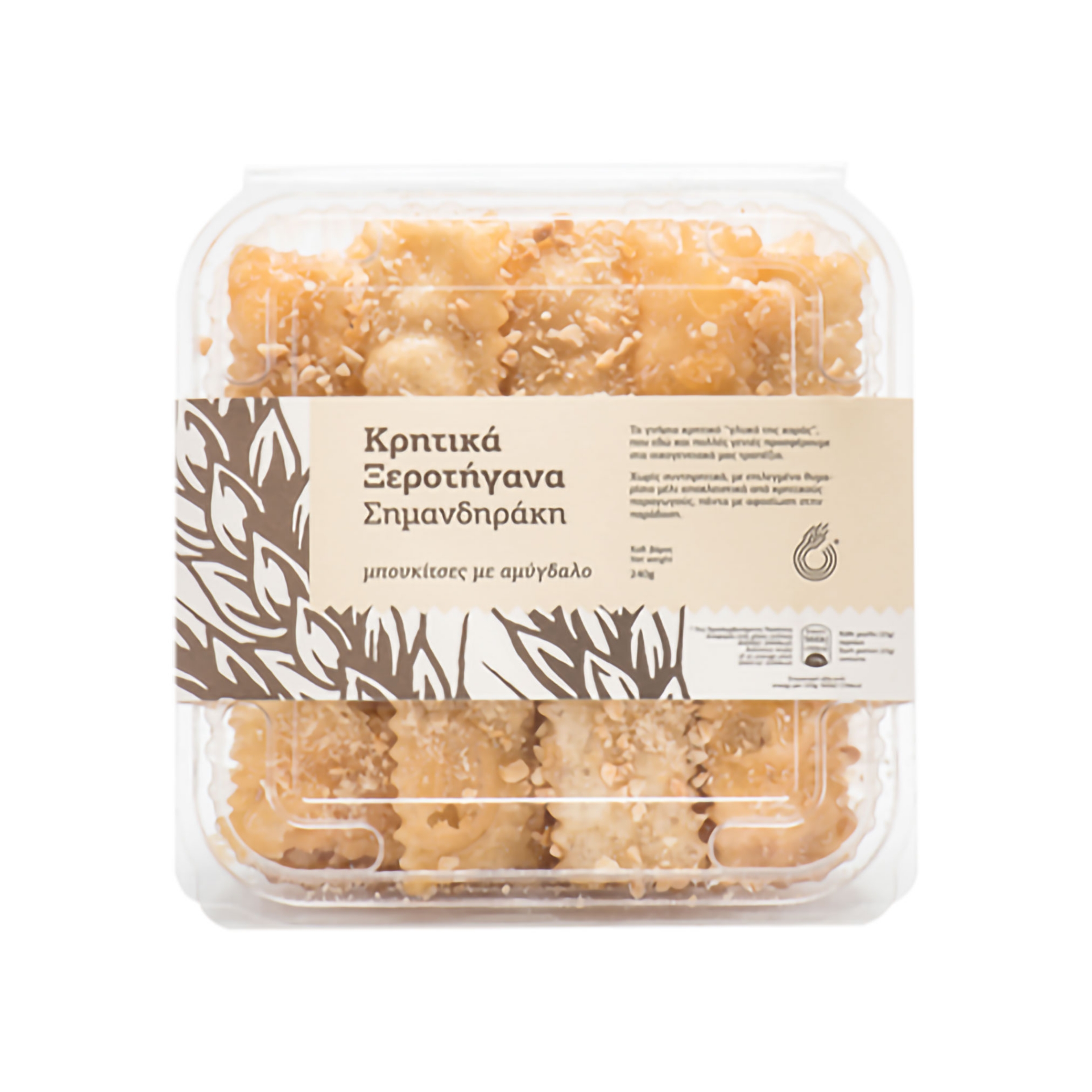 Ervaar de authentieke smaak van Kreta met Simantiraki Xerotigana. Handgerolde, knapperige linten van bladerdeeg, gedrenkt in pure Griekse honing en bestrooid met amandelen. Een tijdloze feestelijke traktatie.