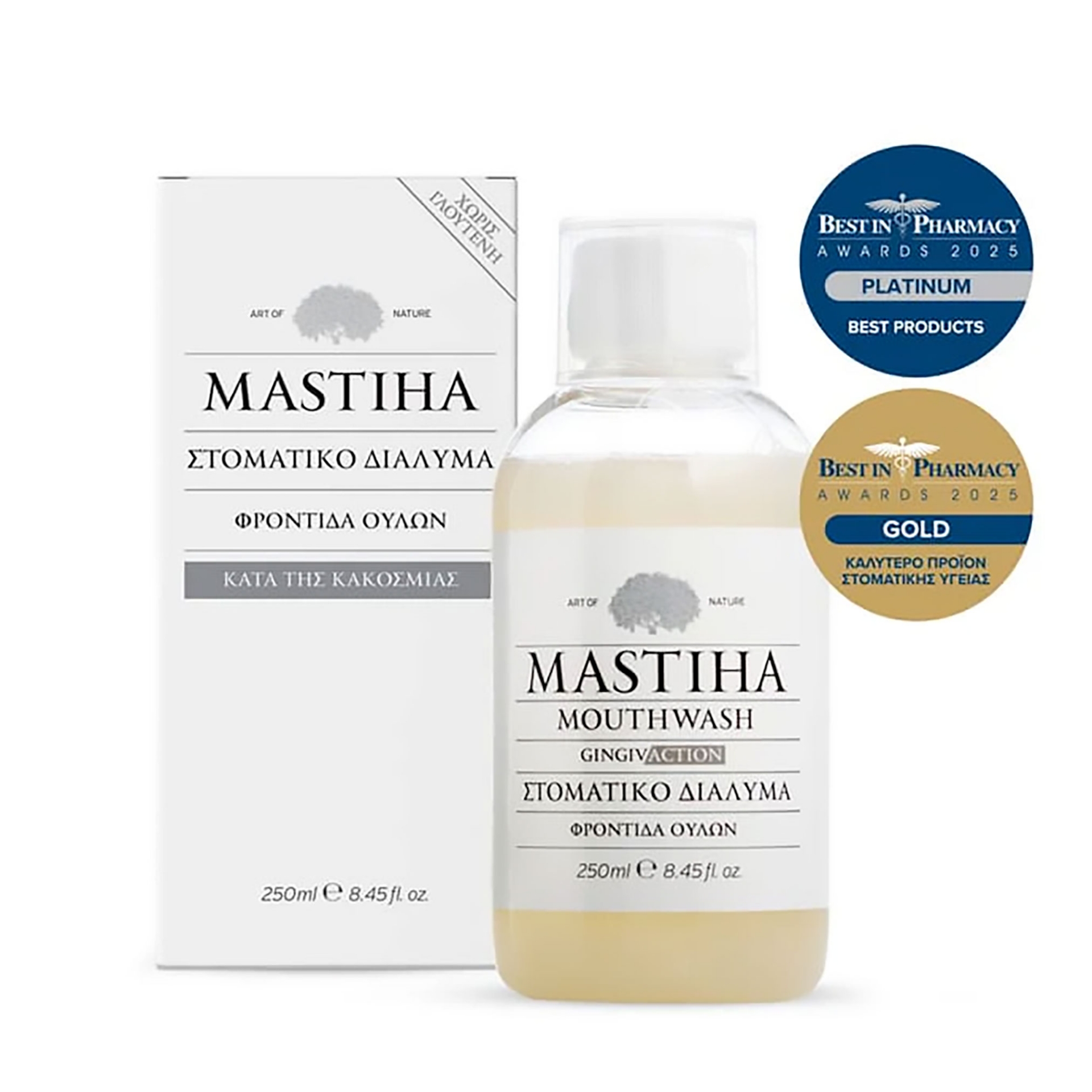 Bestrijd tandvleesontsteking en slechte adem met Chios Mastiha Mondspoeling Gingivaction. 95% natuurlijk, klinisch bewezen, vermindert nare geurtjes met 43%. Niet-brandend en verfrissend.